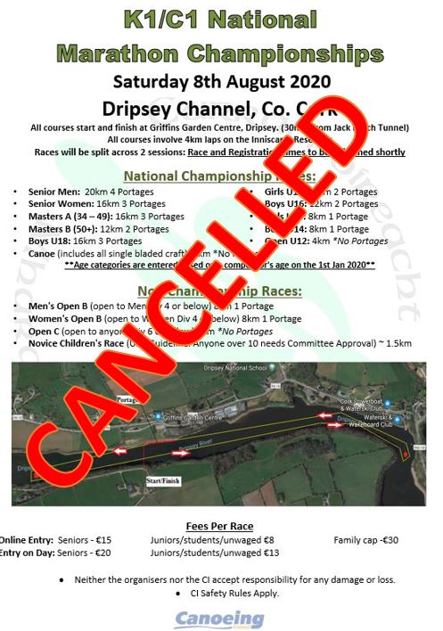 National K1/C1 Marathon Championships cancelled. Local race to go ahead for paddlers from non affected Counties