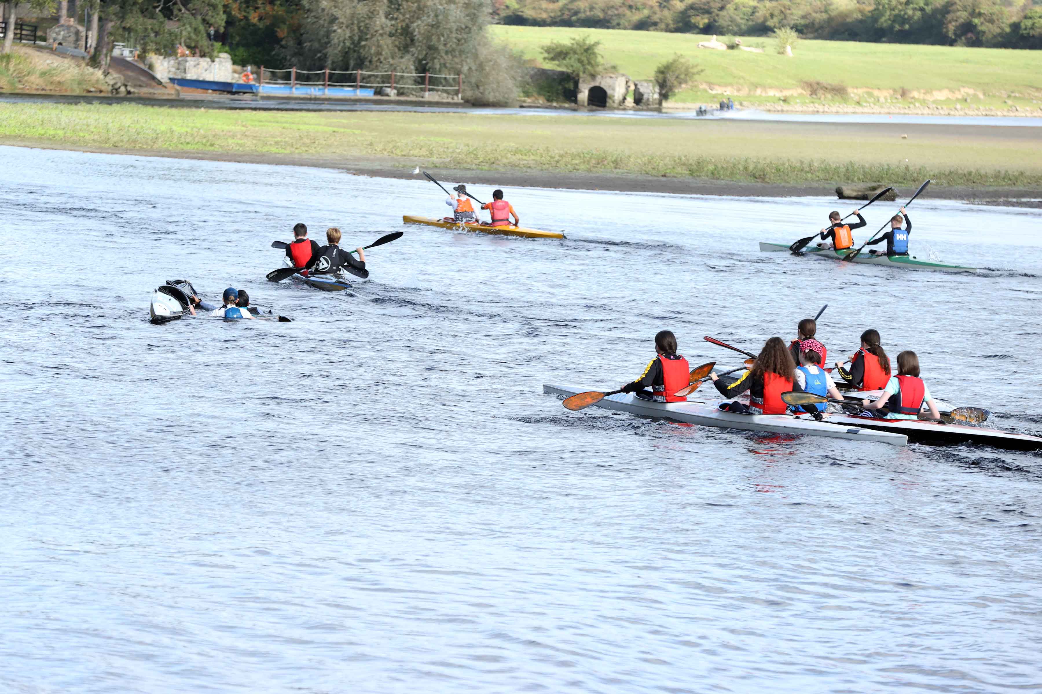Race 3 was the highlight race of the day with more than 20 boats n the start line. There were 2 classes racing. Junior mixed K2 & the novelty but hugely successful mixed ability race. The mixed ability race is aimed at teaming experienced racers with newer paddler to allow for fair racing with unpredictable results. The goal is for the lesser experienced paddlers to gain experience & feel what it is like to be involved in serious group racing under the guidance of an experienced eye. The rule was that the sum of the divisions paddlers usually race in during the Marathon ranking season must add up to 7 or greater. It contained crews made up of International paddlers, some of whom have medal at World Championship level, mixed with junior paddler with very little experience & some as young as 8 years old. The startline was a site to behold as 20+ boats took off together. In the Mixed race Eavan O’Keeffe of Celbridge Paddlers made it 3 podiums & 2 championships out of 3 races while he paired with Eabha Ni Drisceoil of Salmon Leap who was taking her 2nd title. They were followed home by 2 Salmon Leap crews of Kate O’Halloran & Paul Donnellan in 2nd & Ben Smith & Niamh Caffrey in Bronze. The Mixed ability saw a young crew from Salmon Leap of Ben Higgins (Div2) & Sean Smyth (Div7) power home, dominating the field by more than a minute. This is the joy of this race. The winner could not be predicted & this crew just meshed together beautifully. The whole way through the field there was plenty of good racing, lots of lessons learned & most importantly lots of tired but smiling paddlers getting off the water.
