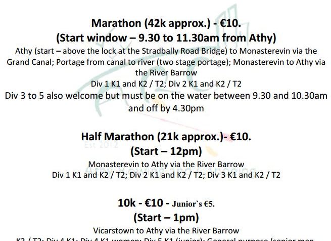 Athy Rowing & Canoeing are running their annual race on Sunday 4th March 2018. This race has 3 different distances courses: Full Marathon: 42k Half Marathon: 21k 10k race All … Continue Reading ARC Canoe Marathon Non Ranking Race Notice
