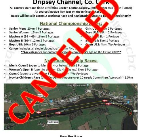 We are delighted to announce the 2020 K1/C1 National Marathon Championships will be held on Sat 8th August at Dripsey Channel, Co Cork. This venue has hosted races over the … Continue Reading 2020 Nation Marathon Championships Race Notice